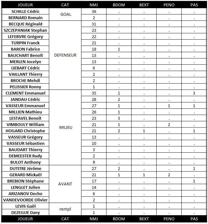 SAISONS (Effectifs, classements, résultats...) - Calais Football Mémoire